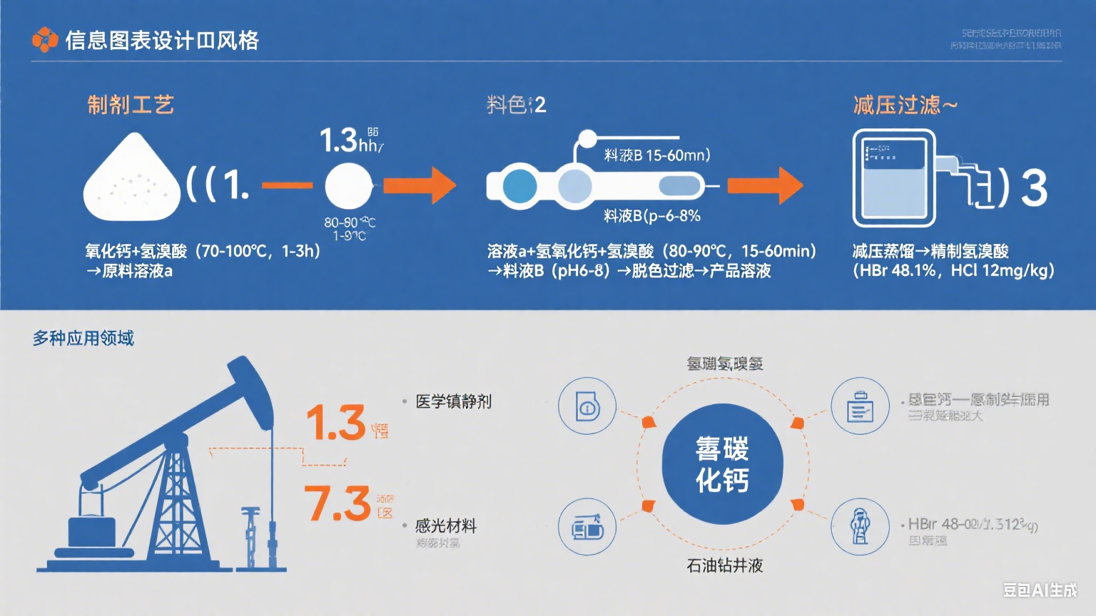 溴化鈣在醫學上用作鎮 靜劑,作用于中 樞神 經系統。它還可用于合成**神經衰弱和癲癇的藥 物;可作為化學分析和感光紙、礦泉水、制冷劑和滅火劑的重要組成部分。在石油鉆井過程中,以高比重產品溶液為載體的清洗完井液可以較大地提高原油產量,已受到完井、修井等用戶的廣泛關注。下面請看油田鉆井產品溶液制備方法的步驟。